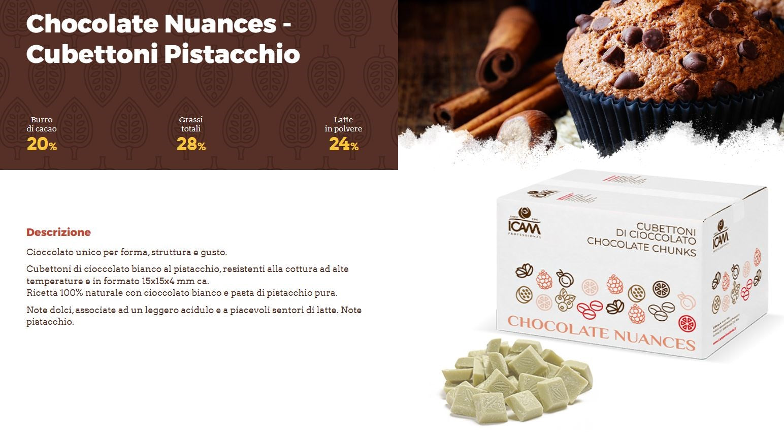 Ricetta 100% naturale con cioccolato bianco e pasta di pistacchio pura.