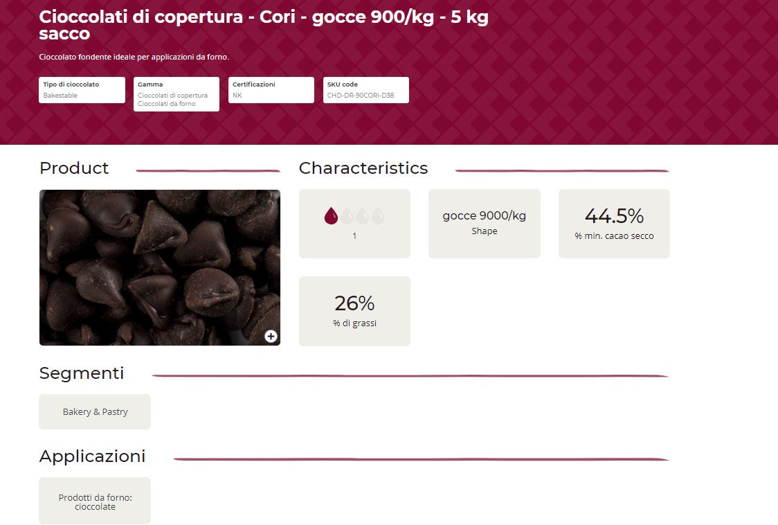 Goccina di cioccolato fondente puro (MIN.CACAO 44.5%) Cori BARRY CALLEBAUT