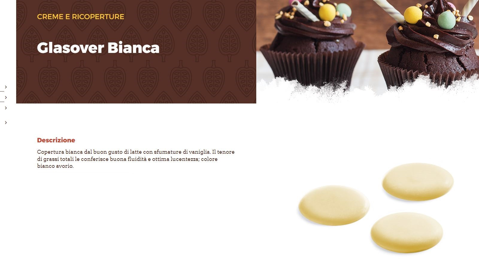 Copertura bianca dal buon gusto di latte con sfumature di vaniglia. Il tenore di grassi totali le conferisce buona fluidità e ottima lucentezza; colore bianco avorio.